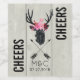 En bröllop-etikett för vin flaska personlig med initialer och bröllop och Cheers som står på sidan. Designad med ett svart hjort tillverkat med geometriskt linjer och med en rosa blommigt krona och korsade pilar nedanför. Rustik och trendig design. Bakgrunden är en digital bild av mjuka beige färgader av träplåtar.