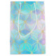 Geometriska kubformer lagras i mönster och färgad i omväxlande skuggor av pastellblått, rosa och lila att ge det ser ut som ett bestrykningsglas. Formerna beskrivs i faux guld glitter.
