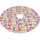 Lyft upp Julgran med den här mönstrade träd-kjolen med en skarp text av stil. En elegant modern geometrisk utskrift i färg på 1970-talet av rött, grönt, orange, rosa och kalkgrönt på vita dekorerar träd-kjolten.