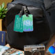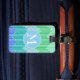En modern design som är uppfriskande och som innehåller fasade rektangulära remsor i blå och grönt med ett monogram på framsidan och din kontaktinformation på baksidan. Anpassa det här objektet genom att välja "Anpassa det" och fylla i den enkla mallen med dina uppgifter. Den här artikeln är en underbar gåva till ofta resande.