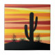Abstraktens geometriska solnedgångsillustration med gult, orange och rött diagonalt rand och cactus dekoration. Lägg till ditt namn/monogram eller ta bort texten.