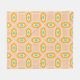 Geometric pattern featuring blue and orange diamond shapes on a peach background. The design creates a vibrant, symmetrical, and retro-inspired look.