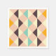 Geometric pattern with overlapping diamonds and triangles in orange, teal, cream, brown, and pink. The design is symmetrical, creating a vibrant, playful feel.