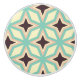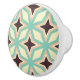 Geometric pattern with alternating dark star shapes surrounded by layered hexagonal outlines in teal, cream, and beige, creating a symmetrical, retro vibe.