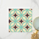 Geometric pattern with alternating dark star shapes surrounded by layered hexagonal outlines in teal, cream, and beige, creating a symmetrical, retro vibe.