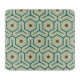 Geometric pattern with interlocking hexagons in green and teal, featuring brown hexagons in the center. The design is symmetrical and retro-inspired.
