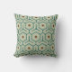 Geometric pattern with interlocking hexagons in green and teal, featuring brown hexagons in the center. The design is symmetrical and retro-inspired.
