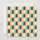 Geometric pattern with overlapping half-circles in teal, cream, brown, and peach on an orange background, creating a vibrant and retro feel.