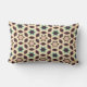 A geometric pattern with star shapes in brown and teal, surrounded by a beige lattice. The design is seamless, creating a retro and symmetrical vibe.