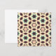 A geometric pattern with star shapes in brown and teal, surrounded by a beige lattice. The design is seamless, creating a retro and symmetrical vibe.