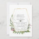Matmiddagsinbjudan för träskgrej med vild örter, ferns, löv och eukalyptus med guld geometriskt ram anpassade till dina händelsespecifikationer.