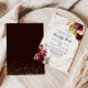 Denna geometriska burgundy nuestra boda bröllopsinbjudan är perfekt för ett rött bröllop. Utformningen har blommor av rosa, , röd, burgundär och gränsvattenfri med grönt blad, som adorerar ett guld glitter geometriska ram.