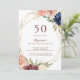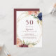 Detta geometriska guld 50:e födelsedagsfest inbjudan är perfekt för en modern födelsedagsfest. Utformningen har handritad vattenfärgsfärg, lila, marin, , burg, marinblommor, grönt och guld löv som adorerar en elegant geometrisk ram.