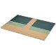 En modern konsthandling av rektangulära geometriska färg-block i grönt och aprikos färger.