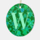 Ornament i ett modernt geometriskt snöflingor mönster - ljust grönt, isblått, kobolt och vitt, på djup grönt, med anpassade monogram brev