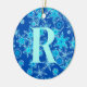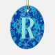 Ornament i en modern geometrisk snöflinga mönster - turkoshajer, isblått och vitt, på en rik safir/koboltblå bakgrund, med anpassade monogram brev