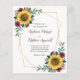 De här inbjudningarna till högfärgsbröllop har en solrosliknande blommigt och ro-bladdesign med faux guld geometric ram. Anpassa dem med din egen text. Besök vår butik för att se vilket sortiment av matchande produkter som du kan anpassa till bröllop.