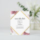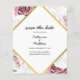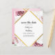 Meddela dina mest spännande nyheter om det kommande bröllop med det här Spara datumbudgetkortet som har ett faux guld-effektgeometriskt ram med blommigt inslag i nyanser av rosa och vita blommor. Designlayouten är enkel att följa upp när du fyller i dina detaljer uppifrån och upp till grund genom att klicka på knappen "Anpassa" ovan. Typografin är modern och finns i svart typsnitt TIP: Kontakta oss om du behöver hjälp med att anpassa kortet genom att använda tal-bubblan högst upp på den här sidan