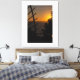 This artistic photograph presents a spectacular sunset over the Bay of All Saints in Salvador, Bahia. The composition uses silhouetted foreground elements, such as geometric metallic spears and tropical foliage, to create a deep, natural frame for the setting sun. The sky displays a vibrant gradation of orange and gold tones that are gently reflected in the calm waters of the sea, where boats and the horizon line of Itaparica Island can be glimpsed. Captured in the historic Tomé de Souza Square, this work evokes the serenity and warmth of the Bahian summer, making it perfect for home decor and clothing products seeking a contemporary aesthetic with a touch of tropical nostalgia.