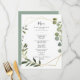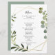 Denna geometriska tropiska grönt lämnar det spanska menykortet för middag är perfekt för ett modernt bröllop. Utformningen har handmålade vackra löv för grönt, som lägger till ett guld-geometriskt ram. Den här menyn kan användas för bröllopsmottagning, repetitionsmiddag, möhippa eller vilken händelse som helst.