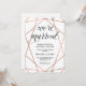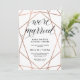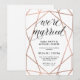 Dessa ultrastiliga, eleganta "vi är gifta"-inbjudningar har en falsk rose gold geometrisk design på en ren vit bakgrund och inkluderar modern svart kalligrafisk typografi. Det perfekta sättet att inbjuda vänner och familj till en efterbröllopsceremoni eller mottagning!