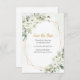 Lägg märke till din stora dag med Geometric White Blommigt Sage Spara datumkortet - en vacker förhandsvisning av vad som är kom! Den här eleganten är en sofistikerad design som kombinerar mjuka sage-toner med känsliga vita blommigtar och skapar ett förfinat utseende som passar perfekt för ett sage-temat bröllop. Ett guld-geometriskt gräns tillför en liten nyans av den moderna glamorn, som utformar detaljerna i den mjuka blommigten och spolar dekorationstecknen perfekt. Berätta för dina gäster om din speciella dejt med ett kort som fångar den tidlösa elegansens som sätter scenen för ett bröllop fyllt med kärlek, skönhet och ära.