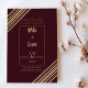 Elevate your wedding style with these modern burgundy and gold invitations, featuring sleek geometric accents and elegant typography.