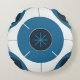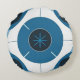 Abstrakt illustration som visar ett symmetriskt geometriskt mönster med livfulla blå och vita former, som frammanar modern konstnärlig estetik.