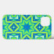Telefonfodral i mönster med geometrisk abstrakt I blad med kalkgrön, cerulenblått och turkos, accentuerad med blått