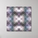 Den här invecklade abstrakta designen har ett symmetriskt rutnät av kuber, som är lagrade med delikat trådramskum struktur och snurrar runt runt linjer. Silver, violett, blått och mjukt vitt skapar en luminös metalleffekt, ge mönster djup och rörelse. Den balanserade geometriska symmetrin i kombination med den eteriska glöden framkallar en futuristiska, modern och mesmeriserande estetik.