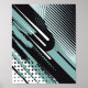En modern abstrakt med diagonalt linjer, cirkelformade punkter och dynamiska penselliknande strömmar i svart, mynt grönt och vitt. Utformningen blandar mönster med rasterpunkt med linjer med jämn böjd våg, skapar rytm och rörelse. Sammansättningen har en balanserad kontrast mellan vasst kant och mjukt kurvor, som framkallar både struktur och fluiditet.