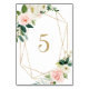 Geometrisk akvarell vårblommor bordnummer | Elegant och feminin bordnummer med akvarellillustrationer av vita, persika och rosa rosor och pioner, bladaccent och falsk folie geometrisk ram. Detta blomsterbordnummer är perfekt för vår- och trädgårdsevenemang.