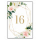 Geometrisk akvarell Vårens blommor Bordnummer 16 | Elegant och feminin bordskort med akvarellillustrationer av vita, persikorange och rosa rosor och pioner, bladaccent och falsk folie geometrisk ram. Detta blomsterkort är perfekt för vår- och trädgårdsevenemang.