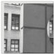 Solljuset tänder bakgrunden, de kvadratiska rutorna i dess rektangulära fönster en blandning av ljus- och mörk-reflektioner. Den skuggade förgrundsväggen drar öga till detaljerna.