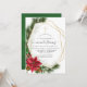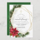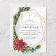 Trendig: Stortchristmas-bekräftelseinbjudan med guld geometriskt ram och handskriftstypografi med sligh klockor, poinsettimiblommor, holly, mistletoe och gräs.
