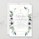 Trendig eucalyptus greenery och vallmoblommor i pastellskuggor bekräftar magnetisk inbjudan med guld geometrisk ram och elegant handskriftstypografi.