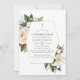 Inbjudan till bekräftelse av blommigt med rosor, vild örter, bomull och liljor med guld geometriskt ram-anpassade till dina händelsespecifikationer.