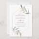 Vattenfärgsbekräftelsemeddelande om grön blommigt i pastellskuggor med guld-geometriskt ram-anpassade till dina händelsespecifikationer.