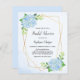 Dessa bröllopsinbjudningar har en akvarell blomsterdesign med blå hortensia blommor, blad och en falsk geometrisk ram i guld. De är en del av en brölloppskollektion som innehåller matchande bröllops- och brudpapper och presenter. Vänligen besök vår butik för att se hela utbudet av bröllops- och brudprodukter som du kan anpassa för ditt bröllop.