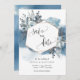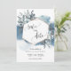 Geometrisk blå vattenfärg och blå blomma spara datumet