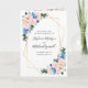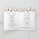 Dessa bröllopsprogram har en vattenfärgsdesign med blåblommor och blommor i rosan, eukalyptus blad och ett faux guld-geometriskt ram. Anpassa dem med texten. Matchande produkter är tillgängliga.