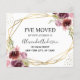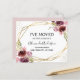 Budgetens moderna och Elegant Blommigt Faux Gold Foil Geometric Watercolor Vår Burgundy och Rosa Flowers I har Flyttat New Home eller Ny adress Card - innehåller vacker och Blommigt skripttypografi med modern elegant och grön för blommigtarna New Home eller speciella Nyare adress.