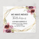 Budgetens moderna och Elegant Blommigt Faux Gold Foil Geometric Watercolor Vår Burgundy och Rosa Flowers Vi har Flyttat nya hem- eller Nya adress kort - innehåller vacker och Blommigt skripttypografi med modern elegant och grön för blommigtarna nya hem- eller speciella Nyare adress.
