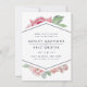 Eleganten sparar datumkorten med en blandning av chic med vattenfärgsfärger i vintage och modernt geometriskt inslag. En spray med vattenfärgade blommor från rosa och uppifrån och grund från ett mittfält i diamantformad inslag som skisseras i midnattsblått och som håller dina namn och bröllop-detaljer i ren, modern text. Kort som går tillbaka till en subtil prid romb mönster i vitt på en dammig blå grått bakgrund.