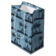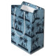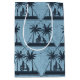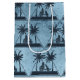 Modern geometrisk utformning av strandtema med silhuetter, ytor och skotrar från handflatan träd i nödlidande blå bakgrund