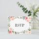 Elegantens rosa/persikofärgat botaniskt bröllop OSA-vykort med en bukett av mjuk pastellfärgad ro, ponnyer och väteväxter i skuggor av vår, persika och kräm med lush blommigt botaniskt rosa och eucalyptus grönt med löv geometrisk löv guld. Hitta fler matchande utformningar och variationer från min "blissweddingpaperie"-butik. Och kontakta mig gärna för ytterligare anpassning eller matchning av objekt.
