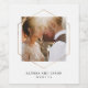 Den här ultratunna etikettdesignen innehåller ditt favoritbröllopsfoto med ett ytligt geometriskt ramöverlägg, och dina namn tillsammans med ditt bröllopsdatum i romerska siffror.
