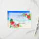 Den här OSA kort matchar de tropiska blommigtens bröllopsinbjudningar. Ett guld-geometriskt ram motverkas av tropiska buketter med blandat media. Det fotografiska ljusröda och rosa hibiscus och vita plumeria parar väl med de vattenfärgade tropiska löven. Den tropiska strandbakgrunden med vattenfärg kompletterar temat.