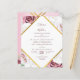 Elegant blommigt bröllop med rosa ros-blommor med guld-effektens geometriska ram. Från "Modern Blommigt och Geometric"-samlingen visar den här fantastiska och sofistikerade layouten dina bröllop-detaljer i ett skript för snyggt och modern typografi med en rik bukett på vit bakgrund. Denna inbjudan till budgetbröllop komar inte med ett kuvert, men ett storlekt A6-kuvert skulle vara en lämplig perfekt för detta. Finns även på den här webbplatsen
