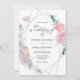 En vacker kombination av delikata vattenfärger och skissade löv och blommor ger elegant till denna unika bröllopsinbjudan. Trendigets geometriska former ramar formgivningen med deras asymmetriska placering. Baksidan av inbjudan har bruden och brudgummens initialer med en dekorativ blommigt som är utsmyckad. Färg omfattar skuggor av rosa, lila, lavender, persikor, grå gult, teal och grönt.